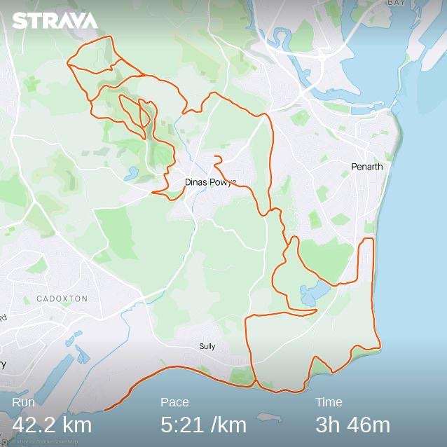 After a relatively pleasant, albeit challenging, 33/34kms in to the run, I found myself still 3 or 4 kms away from home having slightly misjudged the pre-planned route, hence was going to exceed the original goal. Thankfully, apart from the usual aching calves and knees I was still feeling reasonably energised (maybe thanks to the snickers peanut butter bites mentioned in the previous blog). Although I would have been satisfied finishing at around 38km, I felt there would have been a part of me thinking why didn’t I just carry on for an extra 4km or so to take it to marathon distance (42.2km/26.2miles). With this in mind I decided to plough on and chose to extend the route that little bit further to try and get my first marathon under my belt. This was entering unchartered waters for me, running further in one go than I ever had before. Although I always believed I could do it, before this I never actually had the balls or the motivation to actually go and do it. Therefore, I wanted to prove to myself more than anything that “I had it the locker” and thankfully I did. A bit like with the 4x4x48 challenge the finish was slightly underwhelming. I suppose when you finish your first ever marathon you would expect it to be an organised event where you are cheered and clapped in by collection spectators, before being handed your finishers medal and a goody bag of treats. In my case, the only spectator at the finish line (once again) was my legend of a fiancé (support staff) Amy, with a recovery protein shake at the ready. She’s a good egg!!